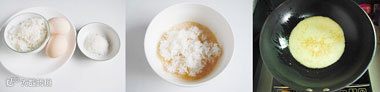 一款最最简单,而不浪费的蛋饼,如果前一天有剩下米饭,那么第2天的早餐就有着落了