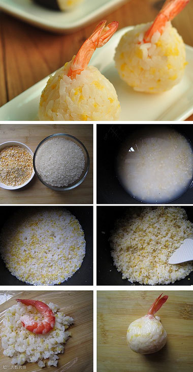大米 ,玉米渣,活虾,寿司醋,海苔。
