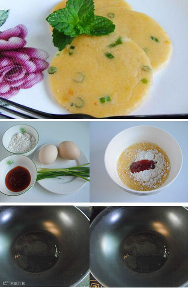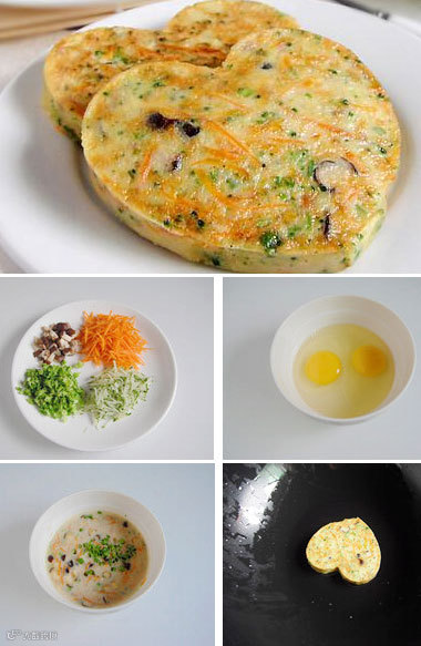 3:也可以不用模具,直接煎。如果用的话,模具内壁记得抹上一层油,这样才好脱离蛋饼。