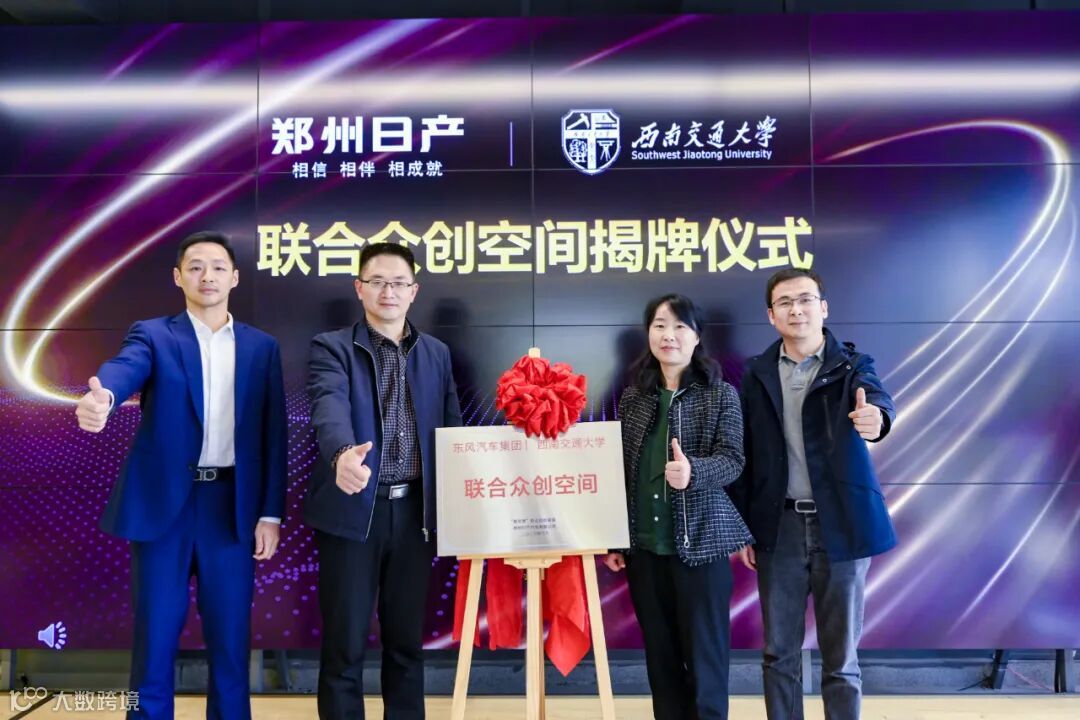 郑州日产党委副书记、纪委书记赵朋,西南交大设计艺术学院执行院长支锦亦等领导为“联合众创空间”揭牌
