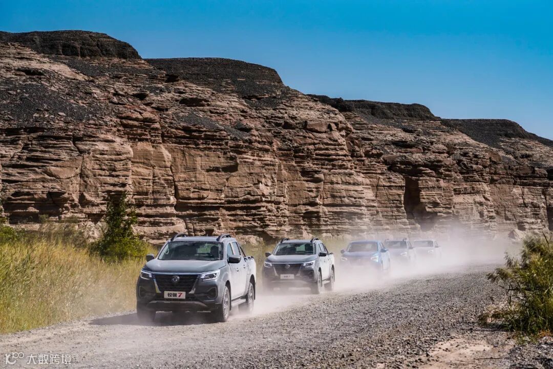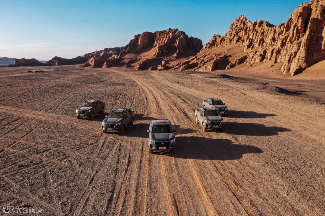 旅行的第一天,我们早上9点从落脚点哈密宾馆出发,到达大海道景区五堡镇出入口,耗时一个小时出头。我和两位队友开的是锐骐7柴油版四驱车型,其他队友开的是锐骐7汽油版四驱车型