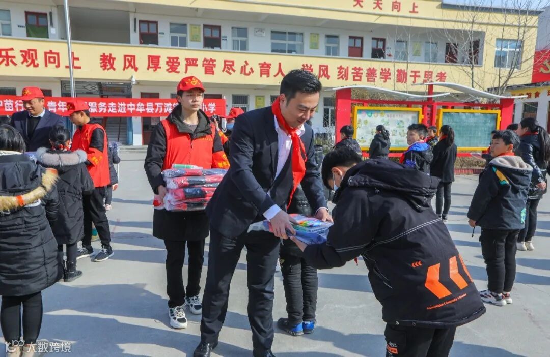 郑州团市委副书记孙颖悟向学生发放学习用品