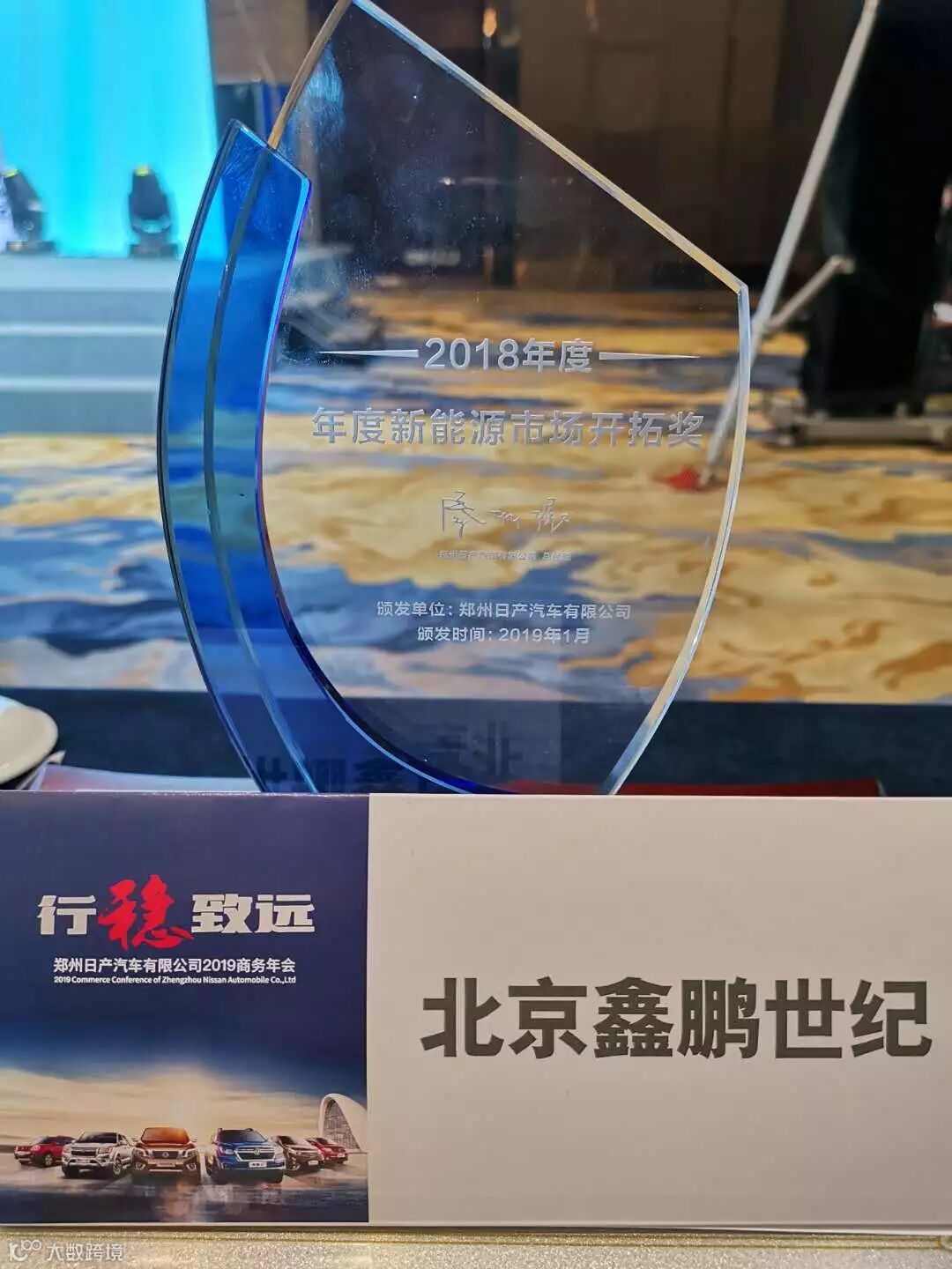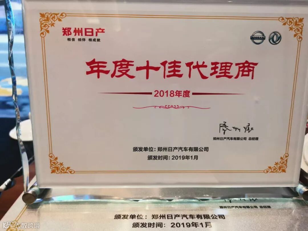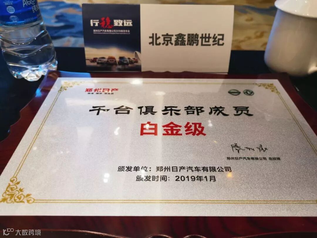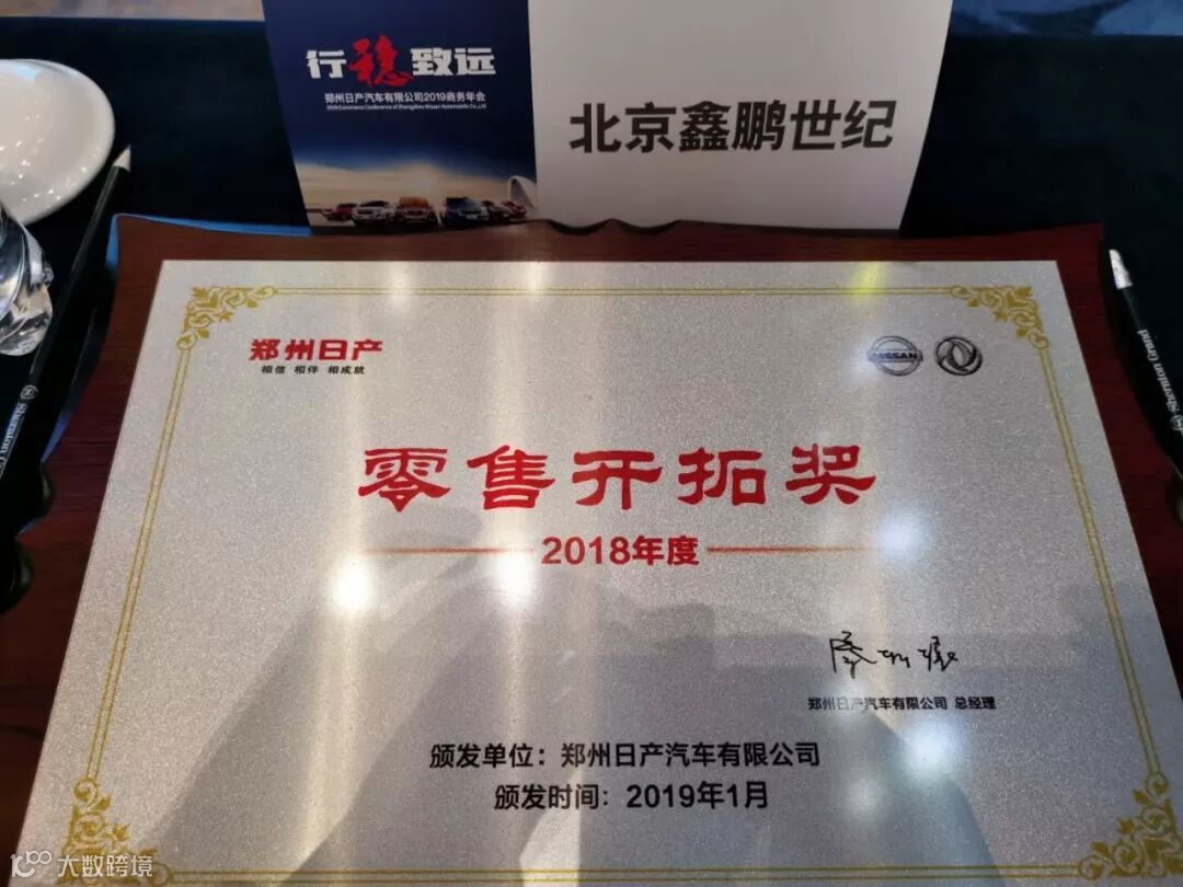 2019年1月17日,郑州日产在郑州美盛喜来登大酒店召开2019年商务年会。在本届年会上,北京鑫鹏世纪汽车销售服务有限公司再度蝉联全国十佳代理商、新能源市场开拓奖、千台俱乐部(白金级)、零售开拓奖等四项大奖!