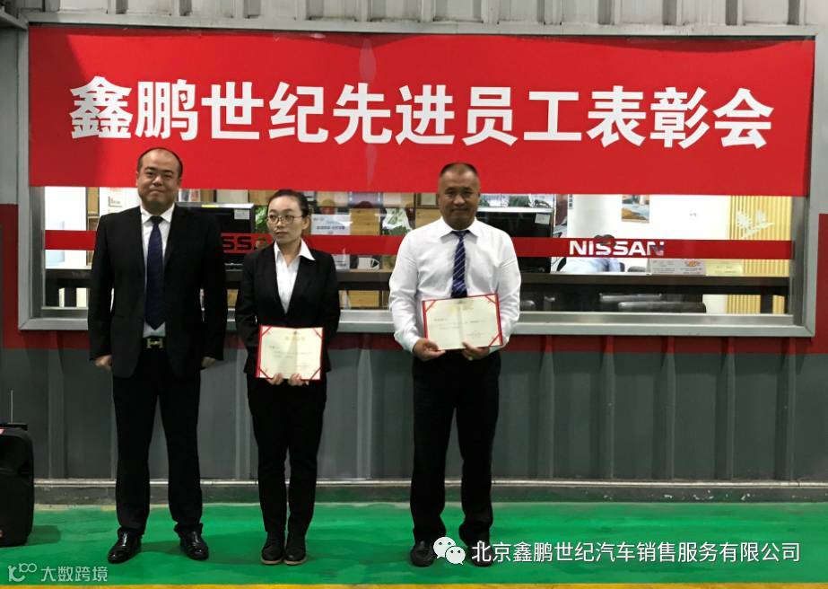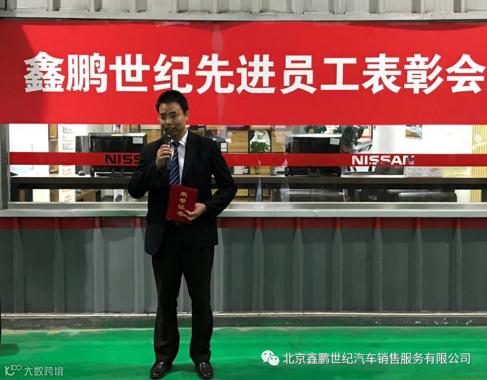 ▲ 全国十佳经销商——北京鑫鹏世纪店郭总为优秀员工颁发证书