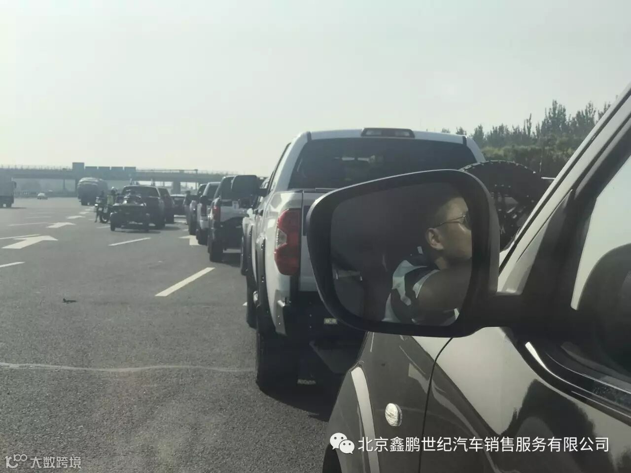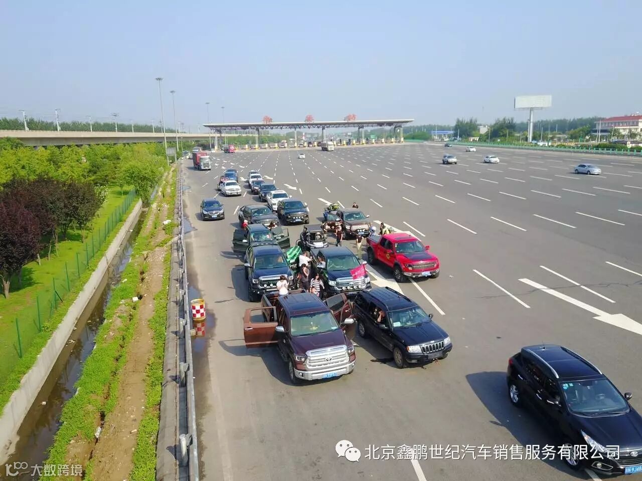 早8点,大家在台湖收费站集合,排好顺序,整装待发!来个航拍图。大皮卡先小聚一下,拖上UTV,摩托艇去嗨皮咯!