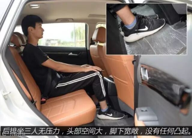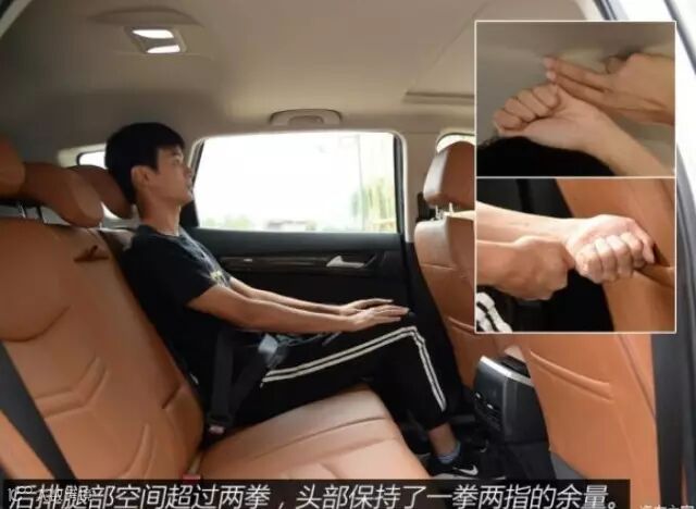 身高180cm的体验者在前排头部空间超过一拳,在后排腿部空间也达到了两拳,头部同样不憋屈,保持了一拳多的空间。更可贵的是后排中间地板基本没有凸起,而且非常宽敞。