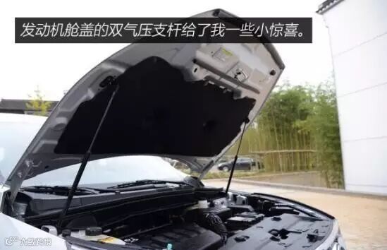 另外,双气压支杆在这个级别和价位的车型当中能配备也是厚道了,虽然发动机舱盖并不会经常打开。