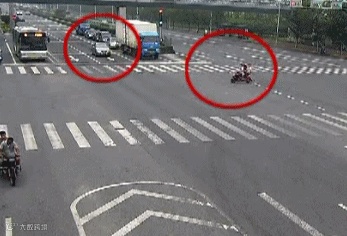 驾驶员视线盲区而引发的交通事故。