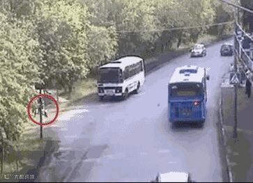 习惯绕过公交车头横穿马路,