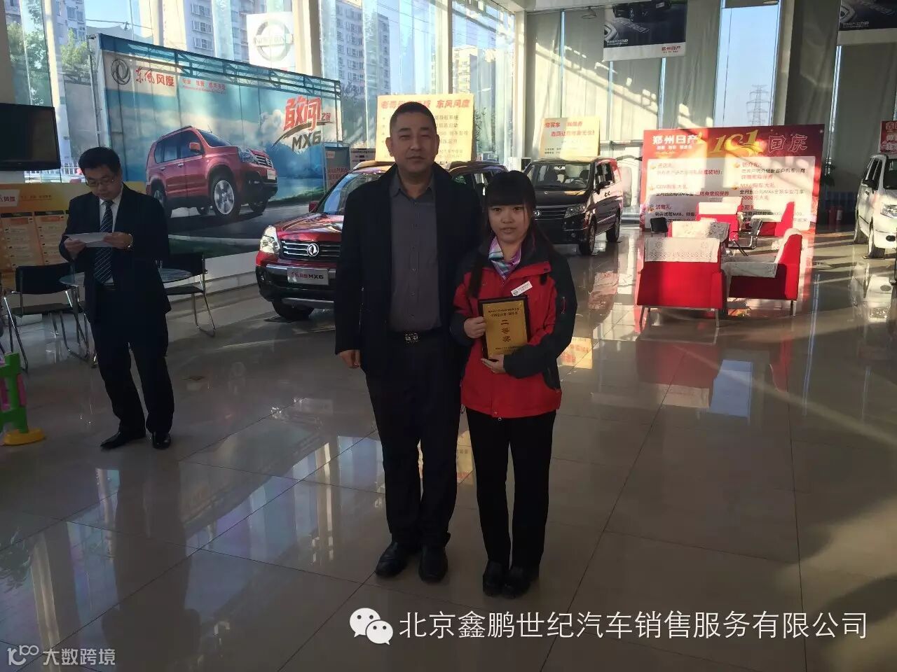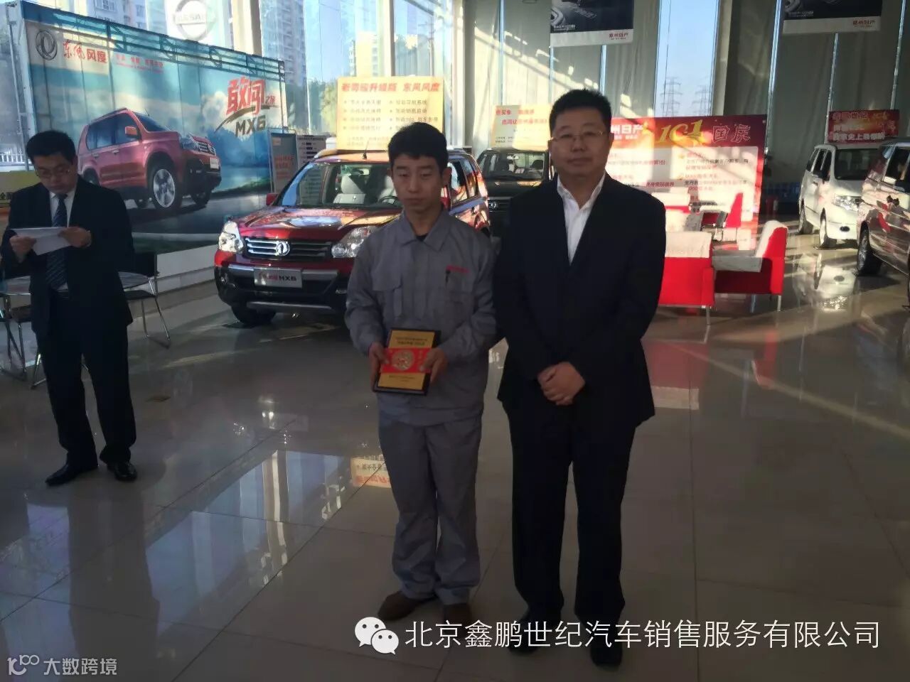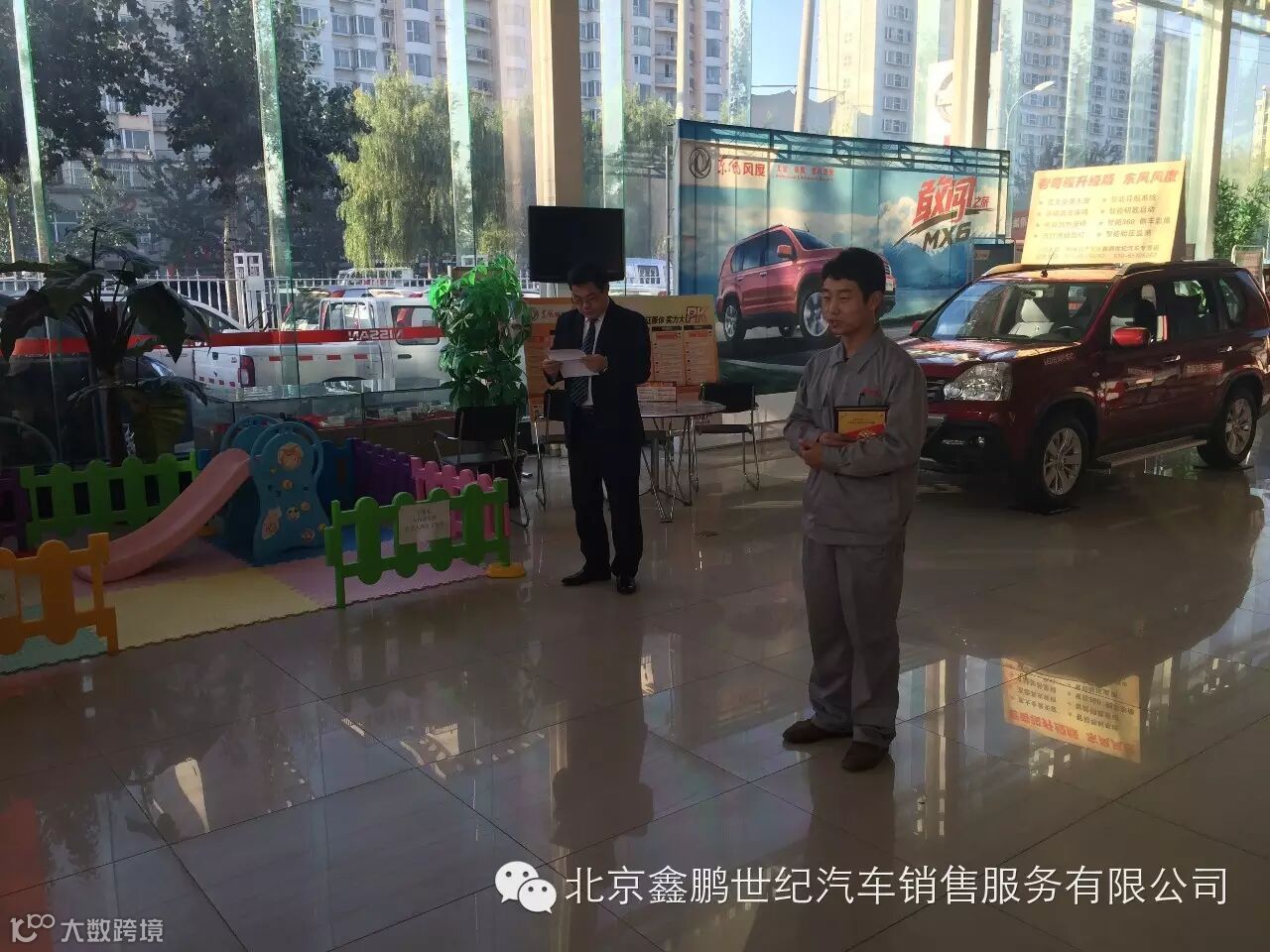 会上,郑州日产鑫鹏世纪店的宋总和杨总为获奖员工颁发奖牌和奖金。