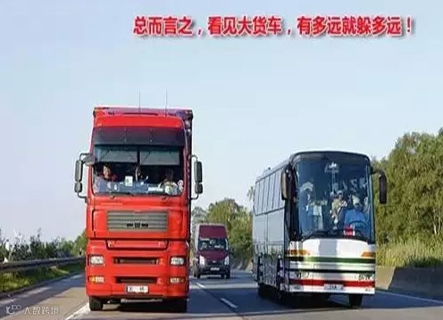 如果你在它侧面那更得小心,过弯时千万别在它的外侧,因为这个超高重心的大家伙很容易侧翻,一旦被它“罩住”可就凶多吉少了。如果你被两辆大货车一前一后的夹击,那就更刺激了——小汽车被两辆卡车夹撞成三明治的事故可不少!总而言之,看见大货车,有多远就躲多远!