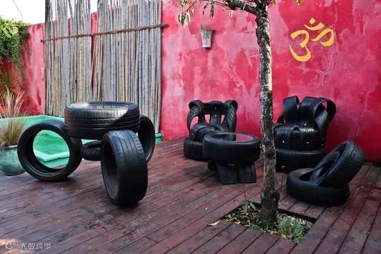 轮胎长凳,感觉坐下去肯定很舒服!