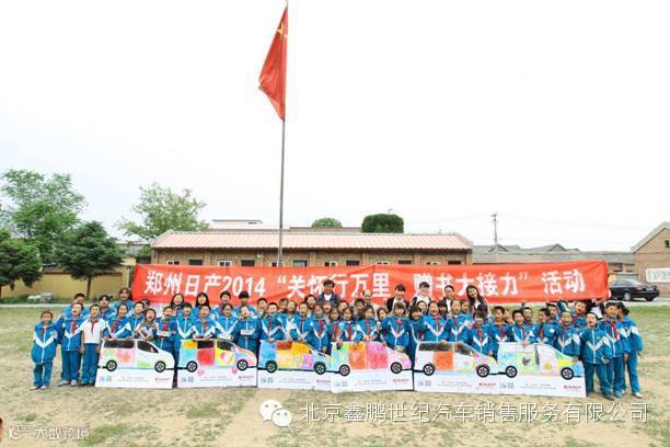 5月9日,郑州日产2014携鑫鹏世纪“关怀行万里•赠书大接力”活动走进北京市郊区的农民工子弟小学,为那里的孩子送去价值5万元的儿童读物、体育用品及教学物资,并捐建了由郑州日产冠名的“爱心书屋”。