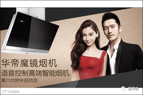 华帝股份(002035)于2015年首次启用代言明星时,便选中了黄晓明和angelababy(杨颖)担任华帝品牌代言人。