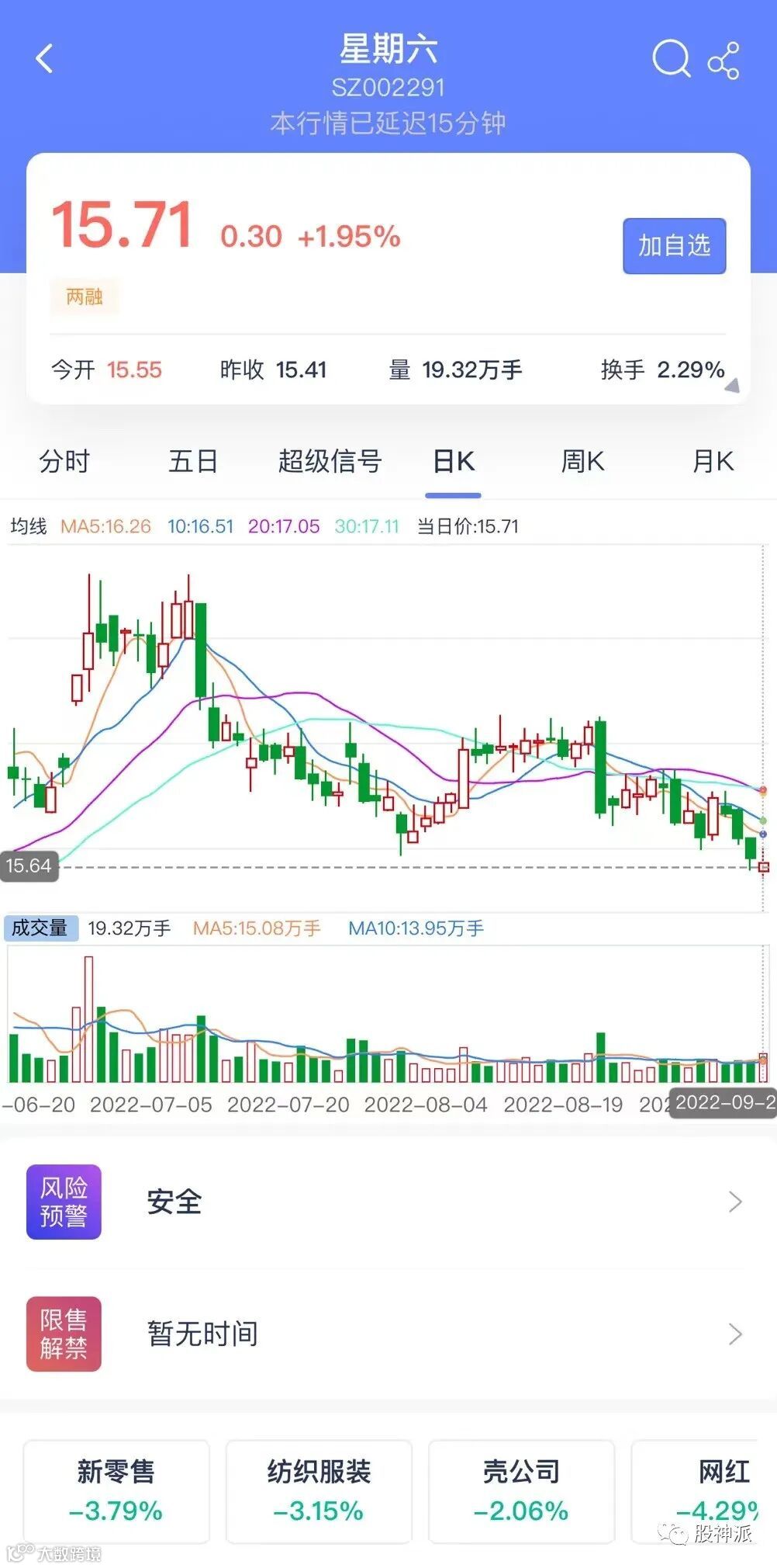 网红经济这把火也会瞬间点燃A股资本市场,星期六(002291.SZ)曾经因为李佳琦在直播间的极力推荐,半个月内创造了12个涨停板。