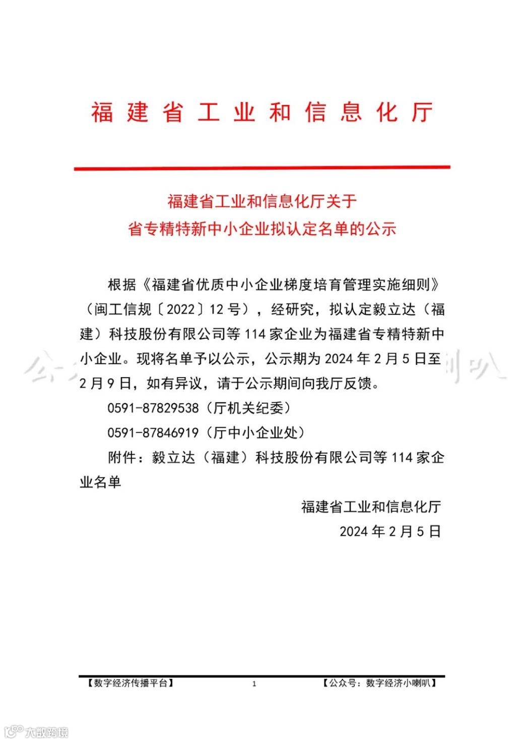 近日,福建省工业和信息化厅公布了2023年度福建省“专精特新”中小企业认定名单,福建中科星泰数据科技有限公司凭借在区块链技术和解决方案服务领域的卓越表现和深耕细作的企业精神,在众多企业中脱颖而出,荣获省级“专精特新”中小企业的殊荣,这是公司继入选福建省重点上市后备企业后取得的又一项重要成果,为企业的上市工作目标迈出坚实的一步。