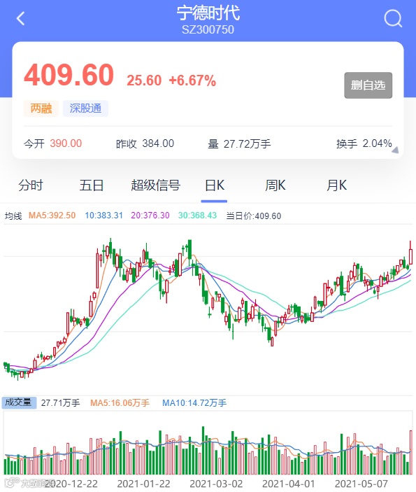 宁德时代重回400元大关