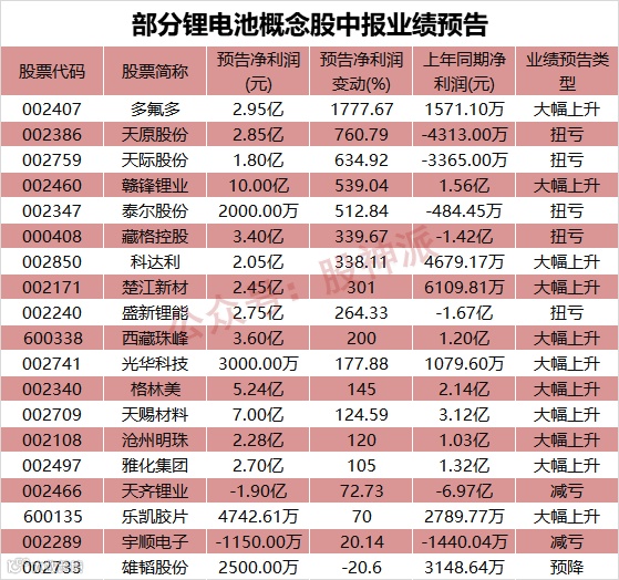 这些锂电池概念股中报预喜