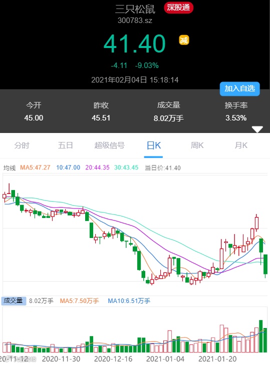 连续暴跌两日,“互联网零食第一股”三只松鼠创上市以来最大跌幅。