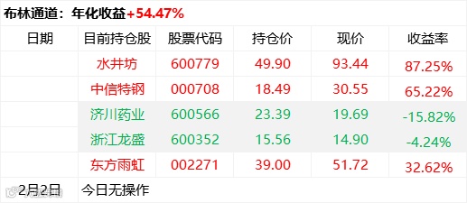 目前持仓:水井坊、中信特钢、济川药业、浙江龙盛、东方雨虹