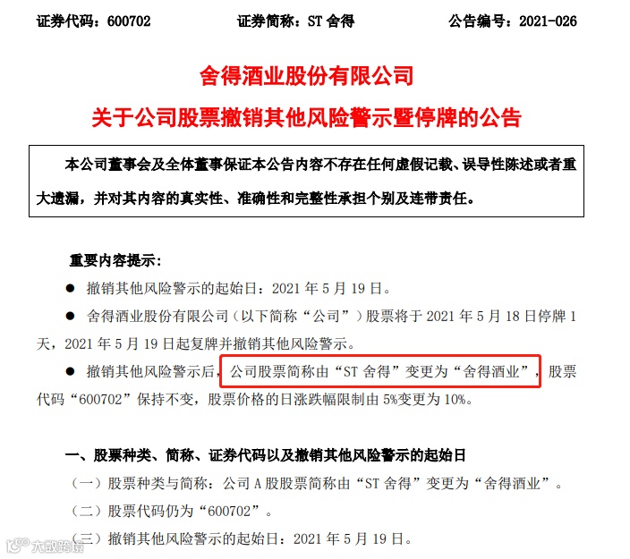 从“戴帽”到“脱帽”,上市公司舍得酒业只用了238天。