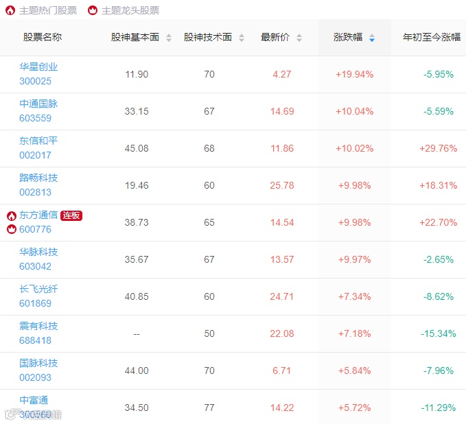今日开盘,通讯行业个股集体高开,东方通信、东信和平、中通国脉等多只个股涨停,华星创业开盘后15分钟内由平开拉升至涨20%,长飞光纤、震有科技、国脉科技涨超5%。