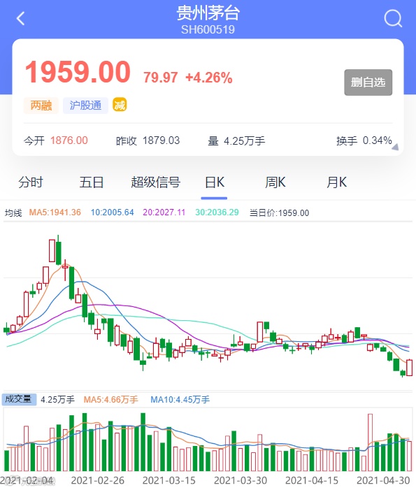 3、今天周期板块挂掉以后,市场走起来的是白酒饮料这类消费股。截至今日收盘,板块内多股出现不同程度跟涨,贵州茅台一改近日的萎靡走势重返1900元上方,结束5连跌行情。