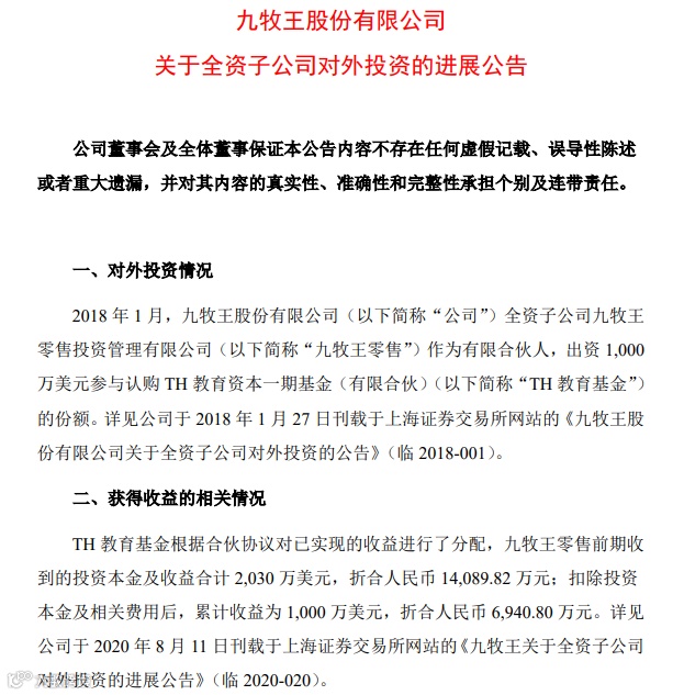公开资料显示,九牧王十大股东之泉州市顺茂投资管理有限公司于2020年9月1日减持了150万股;