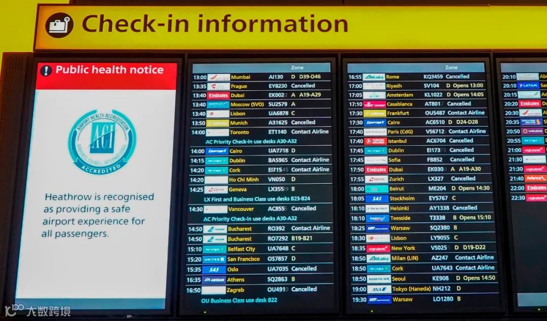 △当地时间12月21日,英国希思罗机场显示多国航班已被取消。