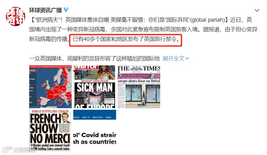 由于担心新的病毒变种可能更易传播,目前已有40多个国家发布了针对英国的旅行禁令。国泰航空亦于21日晚间宣布,由于港府暂停所有从英国飞往香港的航班,因此宣布即时取消12月21日起前往英国的客运航班,直至明年1月10。