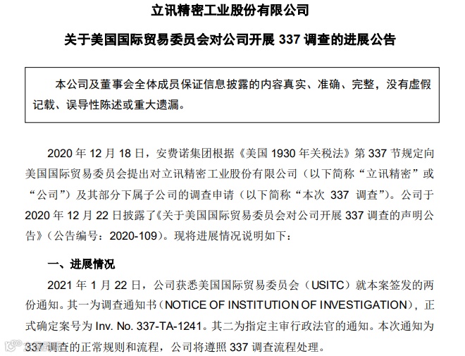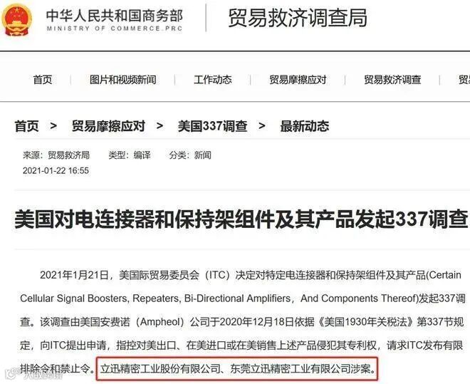 立讯精密遭美国337调查