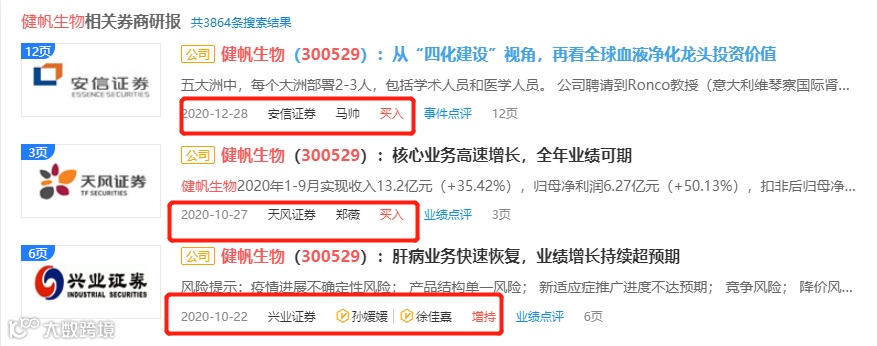 安信证券研报认为,“目前健帆生物产品实现了海外 60 多个国家的销售。随着全球疫情的发展,公司产品在海外市场得到更迅速的推广和普及。上半年公司海外市场整体收入同比增长105.96%。公司血液吸附技术先后被摩洛哥、伊朗、泰国、印度、俄罗斯、英国、哥伦比亚、菲律宾等纳入各级别卫生机构的新冠治疗指南及临床运用中,体现出公司产品在海外的认可度正在不断提升。”