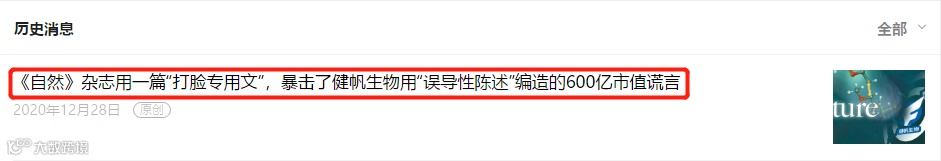 一篇名为《<自然>杂志用一篇“打脸专用文”,暴击了健帆生物用“误导性陈述”编造的600亿市值谎言》的文章,让健帆生物进入水深火热之中。