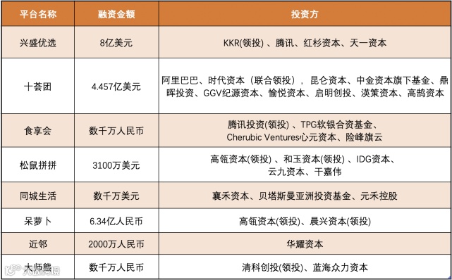根据现有的公开数据显示,包括十荟团、兴盛优选等社区团购头部玩家在内的创业公司获得了资本巨头的青睐,有公司甚至估值高达40亿美元。