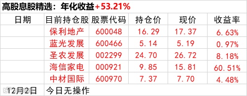 :高股息股精精选,年化收益:53.21%