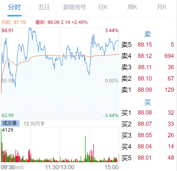 今日,中科创达股价表现较为震荡,盘中由跌转涨一度涨超3.5%,截至今日收盘涨2.49%,报88.09元,最新总市值为354.58亿元。