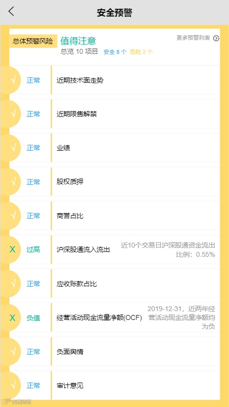 深康佳A的预警指标