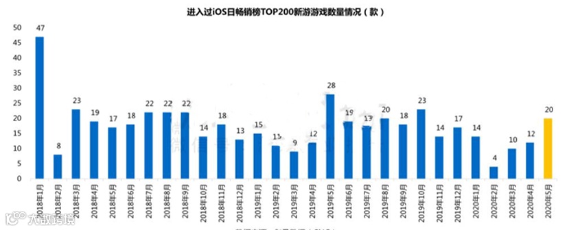 据中国游戏产业研究院近日发布报告显示,2020年5月,中国手游市场规模达176.8亿元,环比增长11.9%。当月发布的新游中,进入过iOS日畅销榜TOP200的数量达到20款,较上月增加8款。
