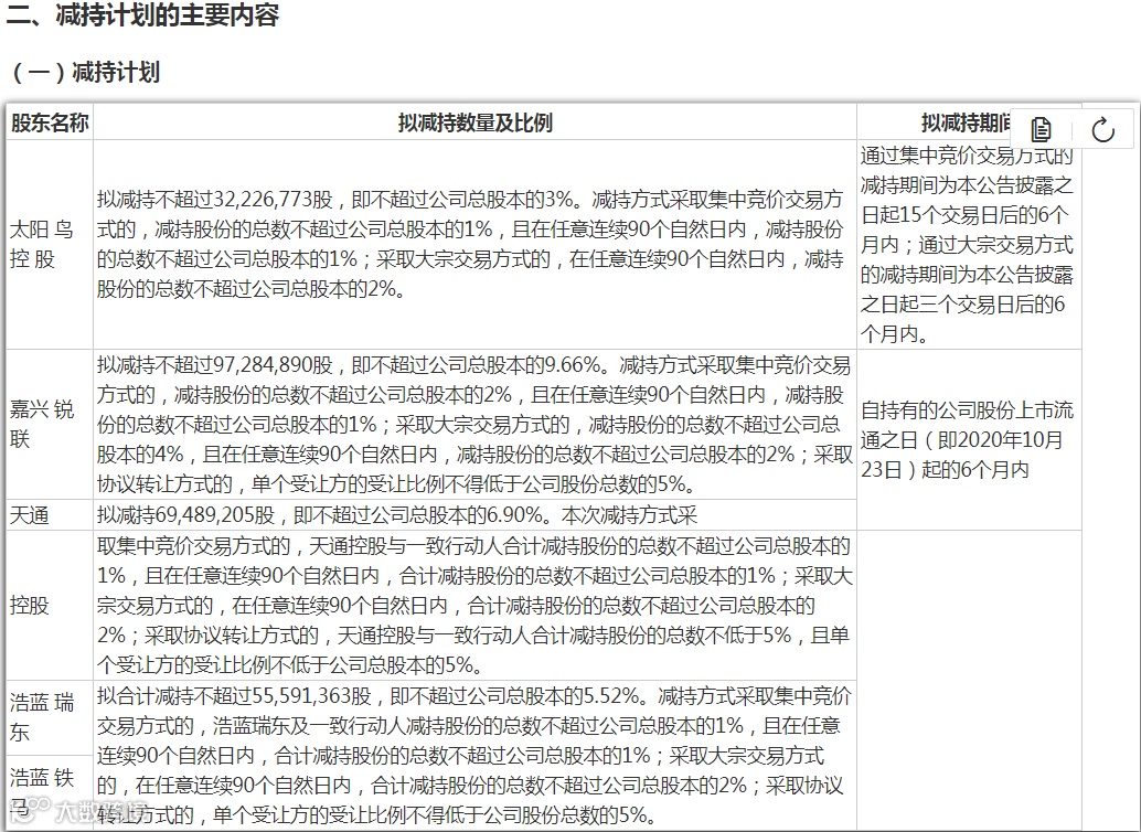 嘉兴锐联拟减持不超过9728.49万股,占公司总股本的9.66%;