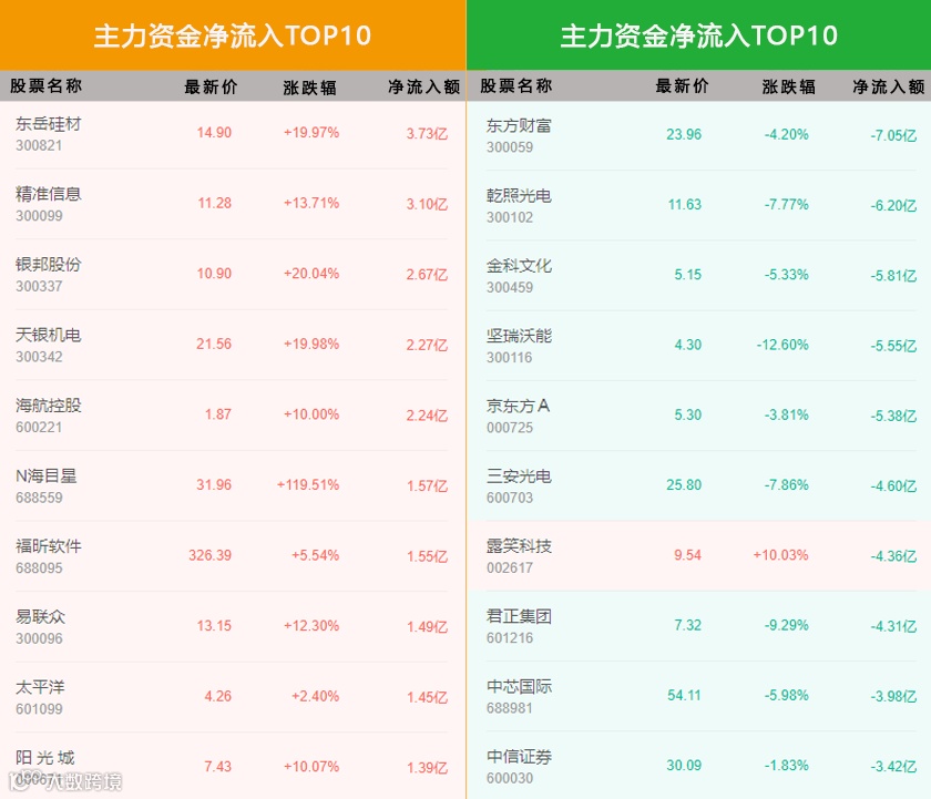 和邦生物净流入9.19亿,为个股最高,三日涨幅为22.61%。