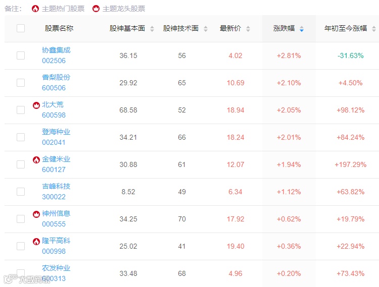 相关公司方面,根据股神派主题库乡村振兴板块显示,
