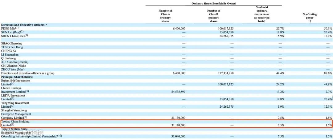 赛富和阿里巴巴(通过淘宝中国控股)均持股8.56%;君联资本持股8.54%。