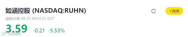 不过,今日受阿里消息的影响,如涵控股尾盘股价再次大跌。截止今日收盘,如涵控股大跌5.53%,股价报3.59美元/股。