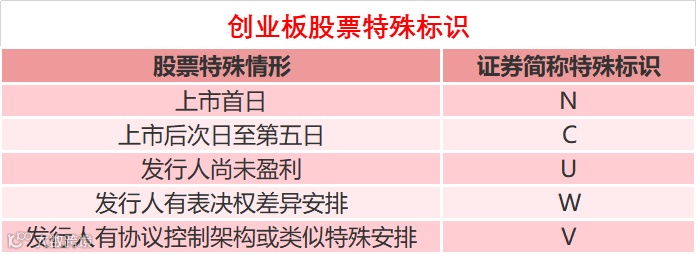 对发行人尚未盈利、存在表决权差异安排、协议控制架构或类似特殊安排的证券分别新增"U”"W"“V”标识。