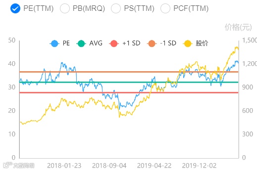 一般来说,行业的龙头估值都会比其他公司的估值要高,趋势图很明显,在估值走到一个低位的时候,股价也呈现一个低估状态,这就是一个比较好的购入的机会。