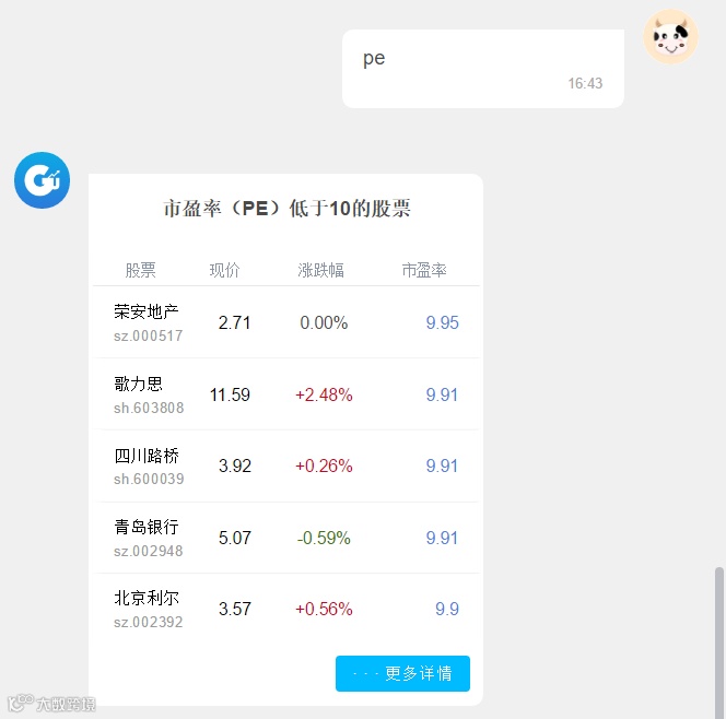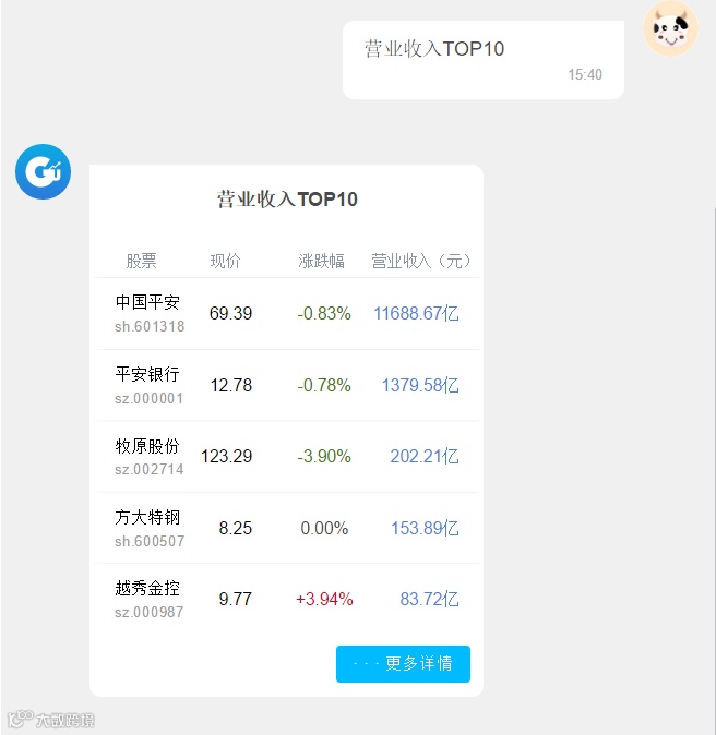 你以为小花只是一个死板的机器人的话,那你就又错了,她不仅能诊股、看研报、预测大盘,还能和她聊天。无聊的时候和它聊天可以获取乐趣,还可以解决许多小问题哟。