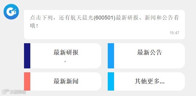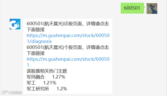 还是拿【航天晨光】举例,直接在股神派聊天窗口输入:航天晨光或者600501。