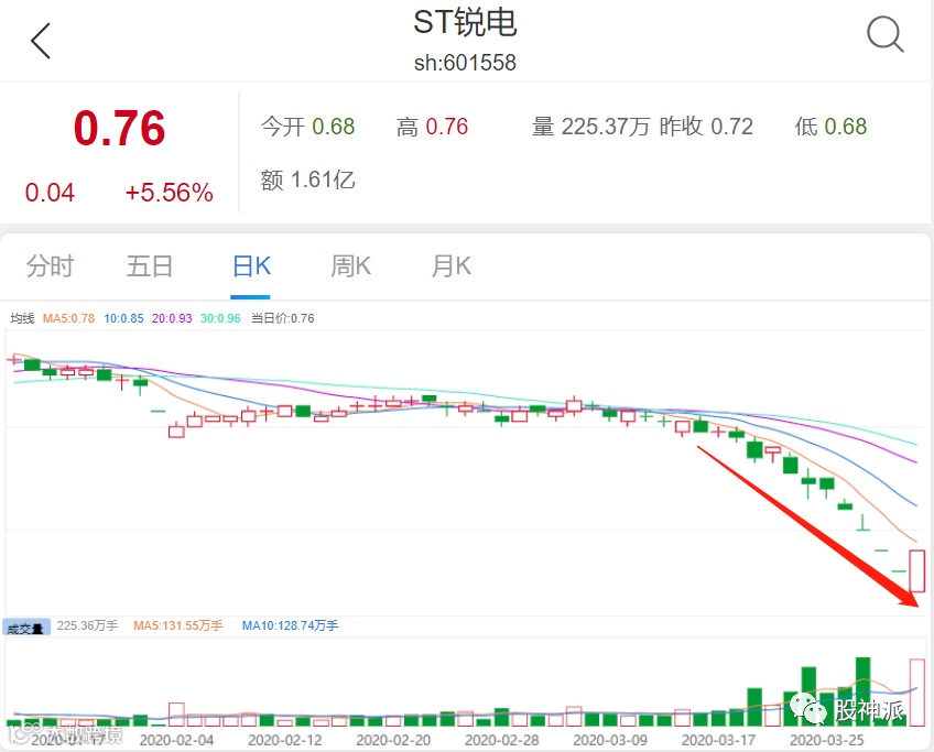 数据显示,自3月16日以来,ST锐电收盘价已经连续13个交易日低于面值1元,根据规定,若公司股票连续 20个交易日收盘价均低于股票面值,公司股票将被终止上市。