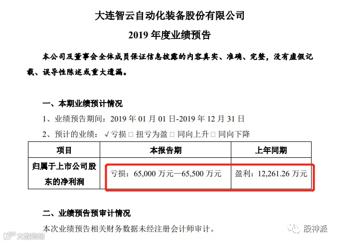 按照智云股份2019年业绩预告的亏损额达到6.5亿元至6.55亿元,意味着智云股份一次性亏损了上市九年的全部利润。