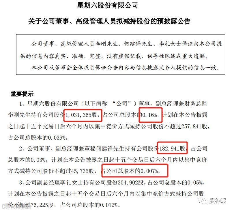 在股价暴涨的同时,星期六的股东以及高管正集体“出逃”。